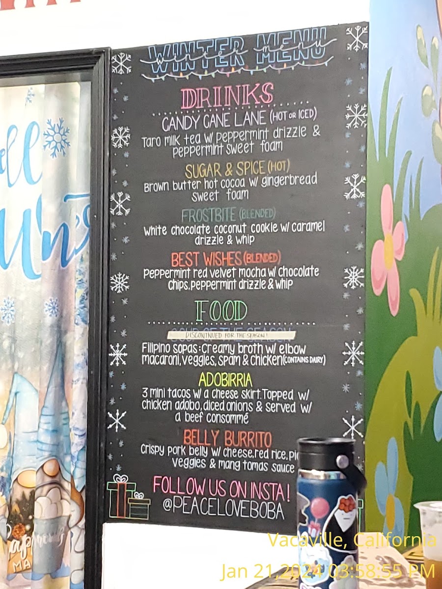 Although some customers mentioned areas for improvement, like seasoning in certain dishes, the overall enthusiasm for the boba and the innovative menu offerings shines through. This balance between Filipino classics and modern twists makes Peace Love & Boba a must-visit eatery in Vacaville.